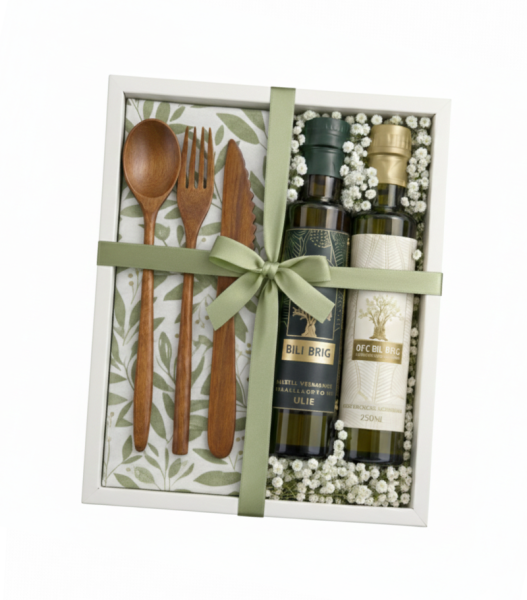 POKLON PAKET #2 : drveni pribor set te dvije 0.25 boce LIMITED i ZELENA BERBA ulja Bili Brig.